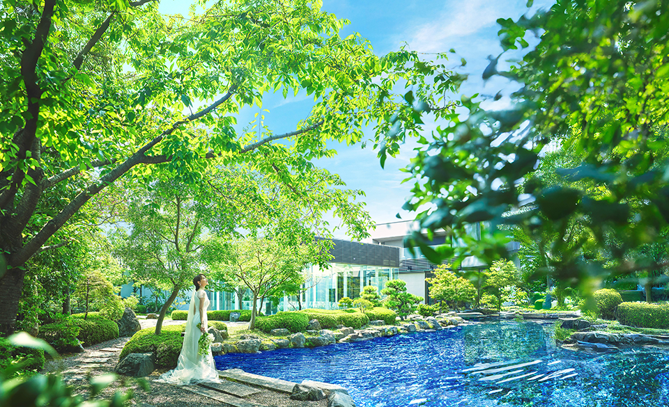 結婚式場として存在するモダン邸宅が