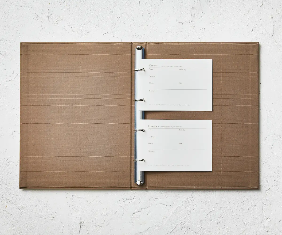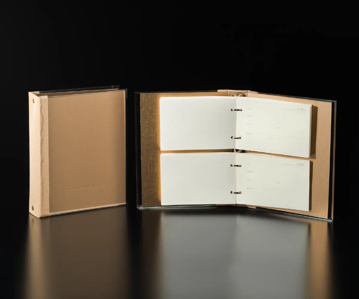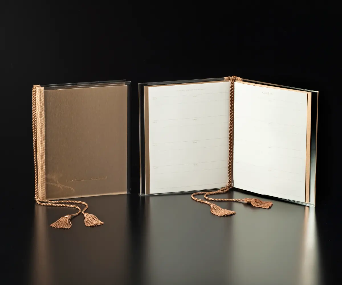 アクリル素材を表紙に使用したシート式の芳名帳