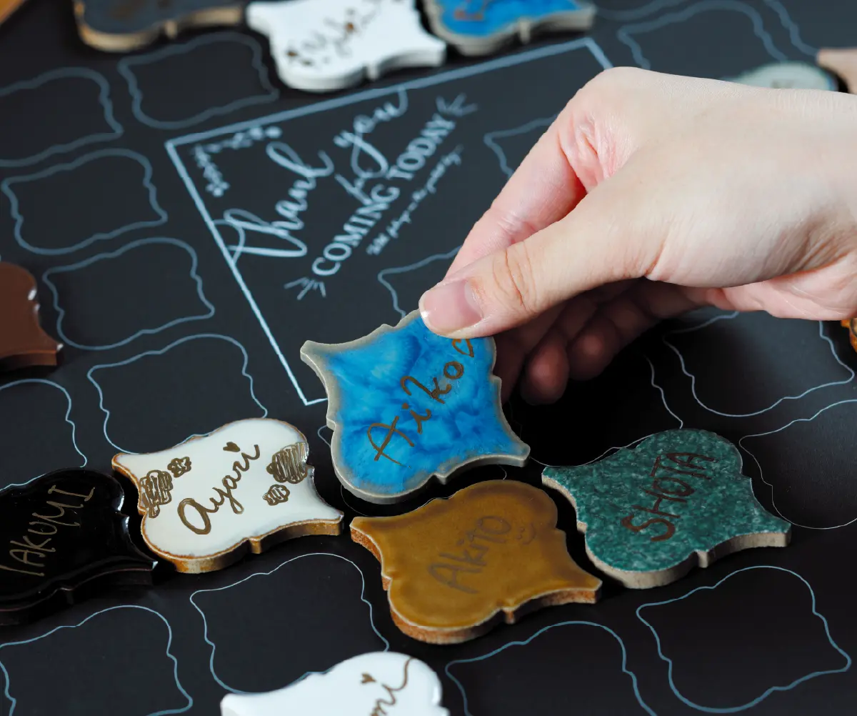 色鮮やかなタイルにゲストのお名前を入れて