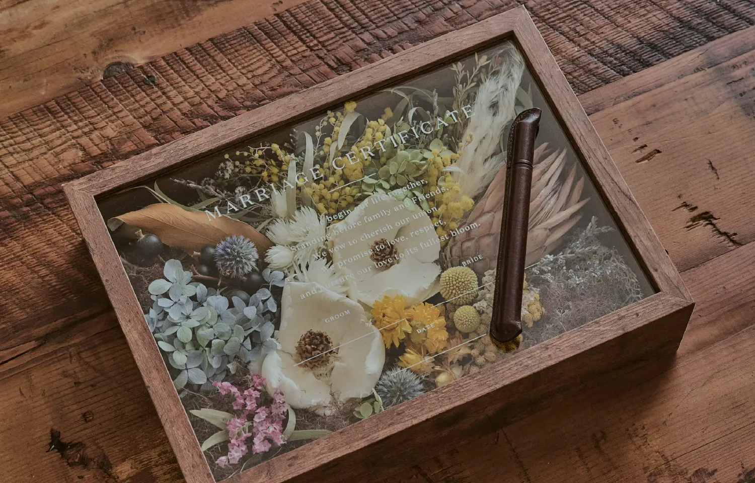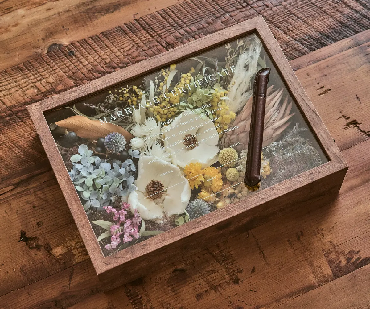 ゲスト参加型のお花を詰めて完成する結婚証明書