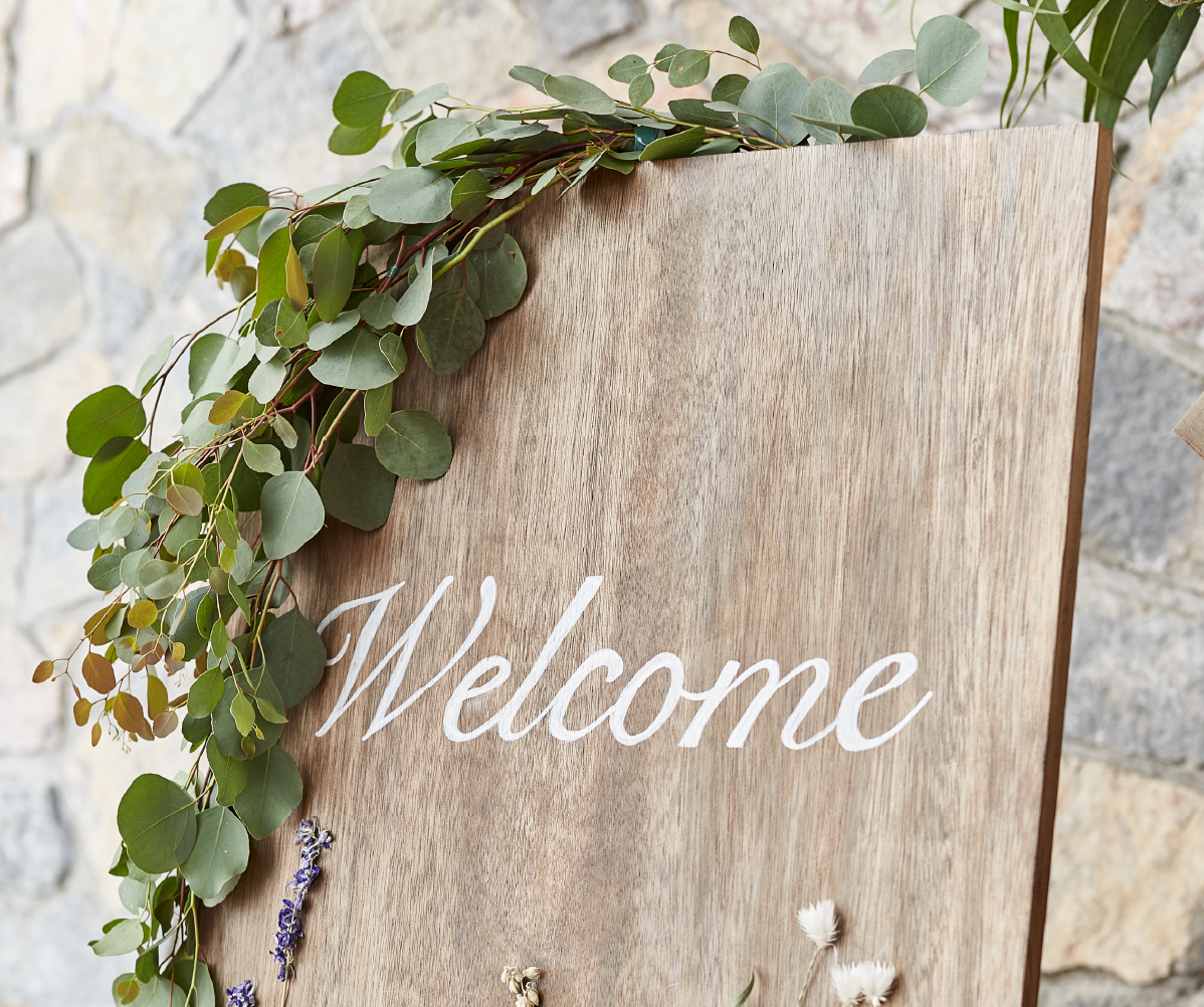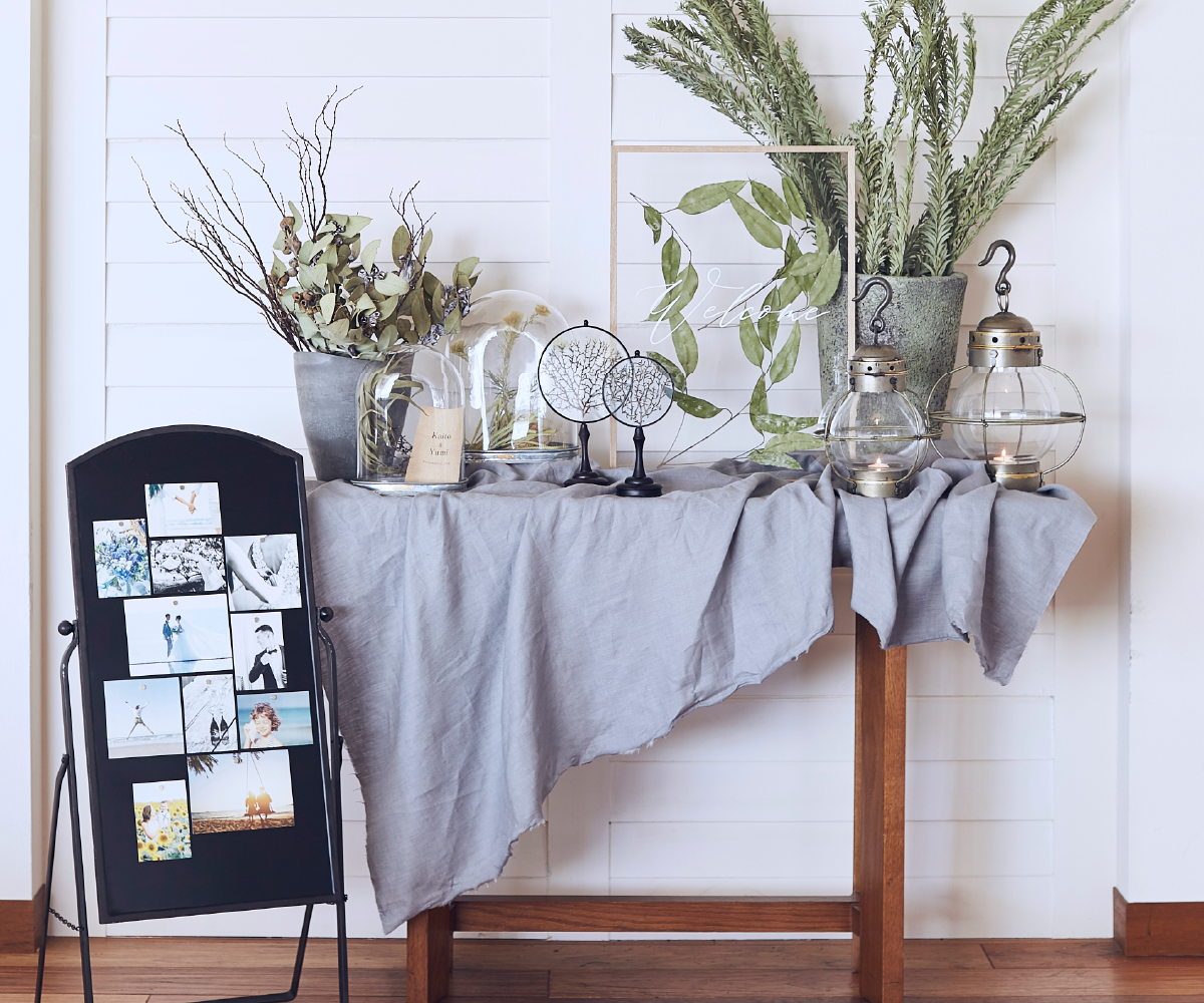 ウェルカムボードにグリーンをたっぷり飾ってボタニカルテイストに