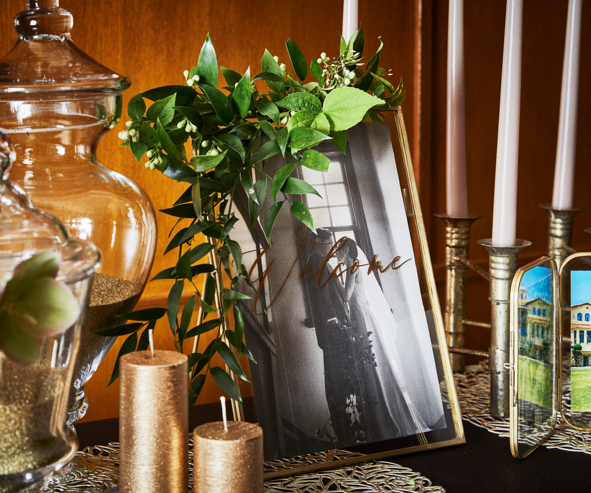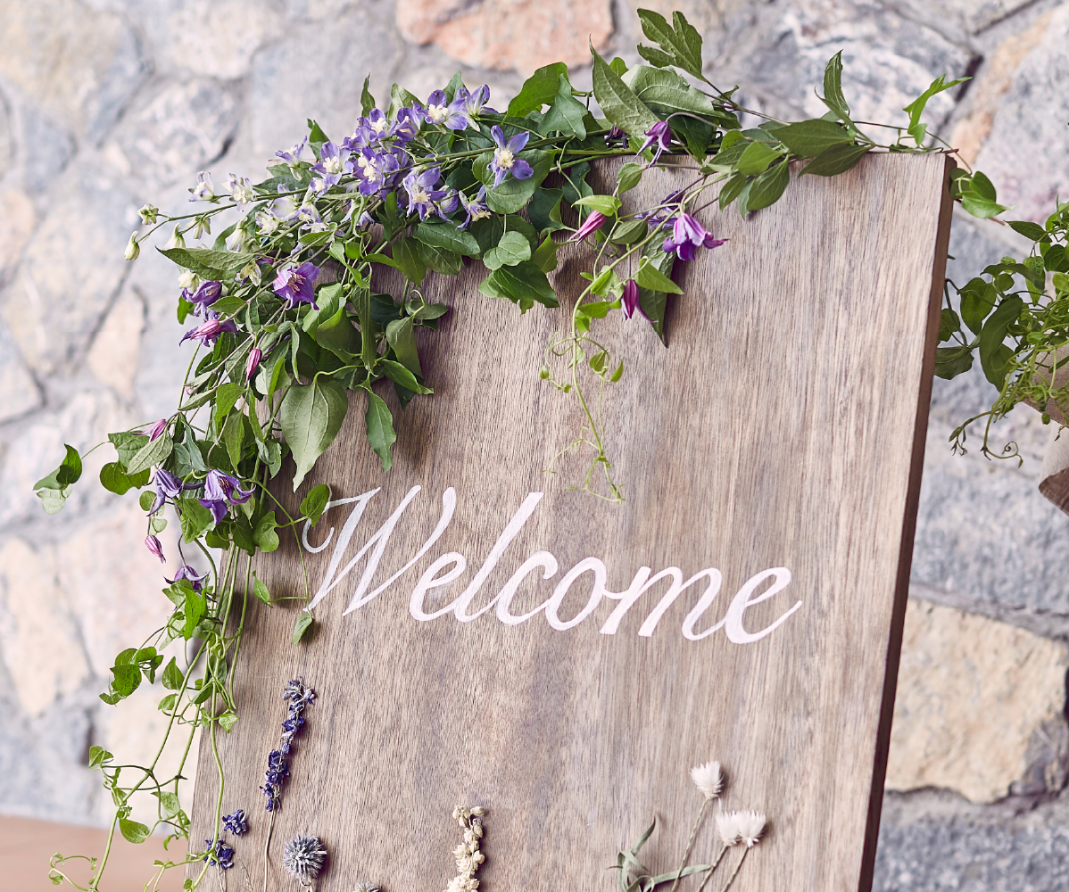 クリアなウェルカムボードが上品な抜け感を演出