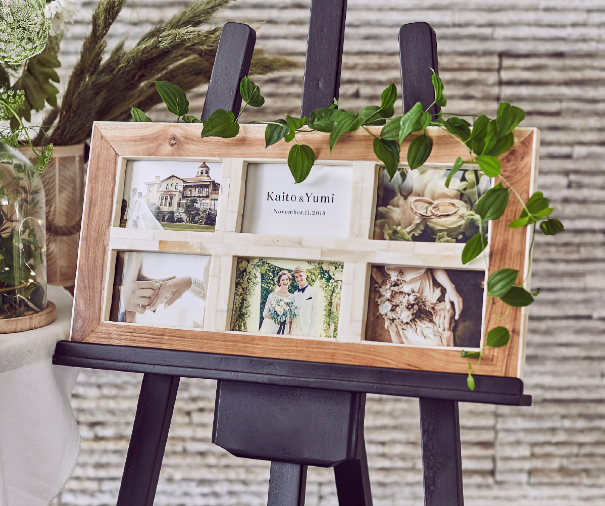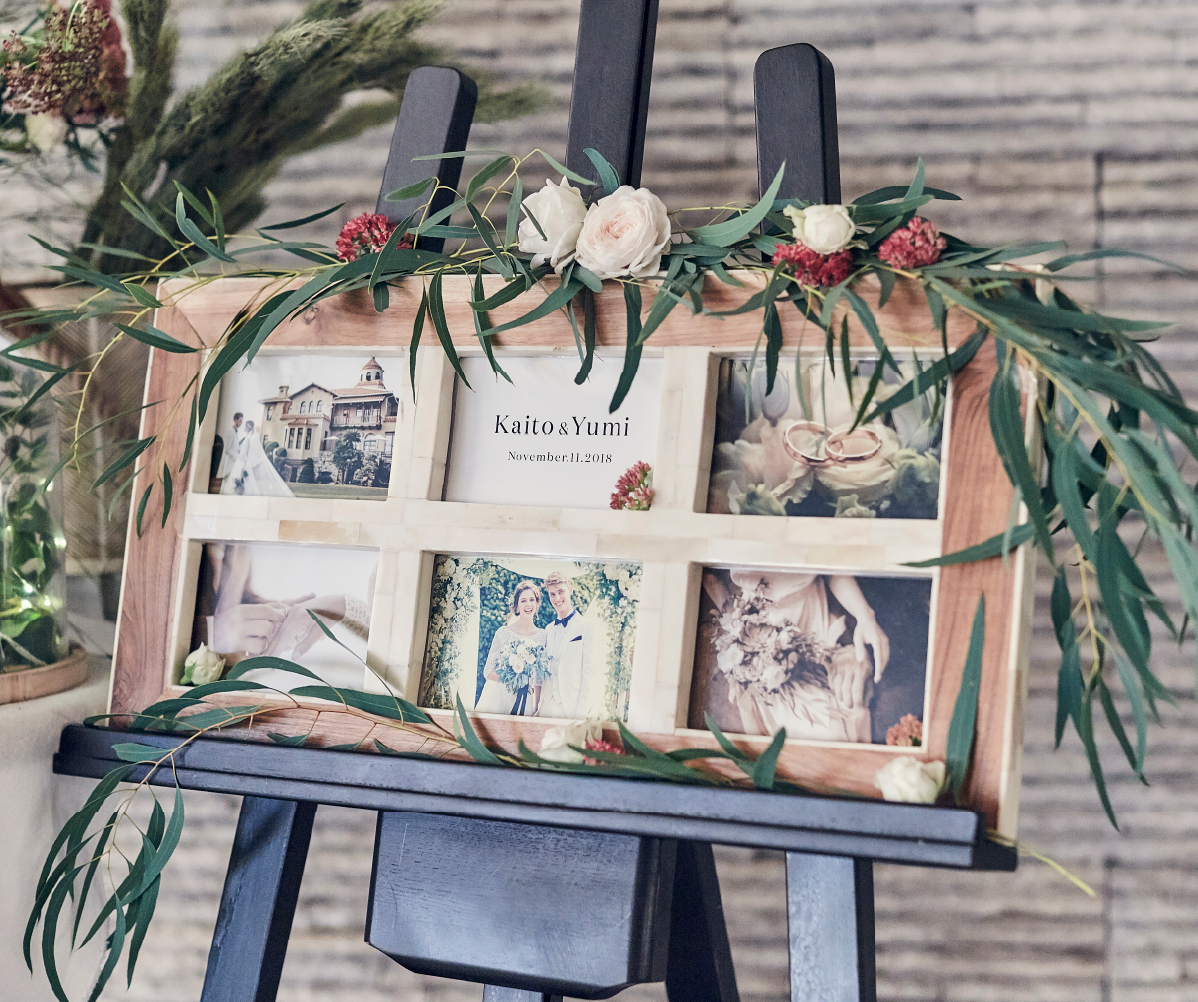 結婚式でゲストが最初に目にするウェルカムアイテム。だからこそ、その大切な一日を印象付ける重要な意味を持っています。フラワーアーティストがトータルプロデュースしたウェルカムアイテムにおふたりの思い出の写真とお好きな装花を飾って、オリジナルのウェルカムディスプレイを完成させてください。